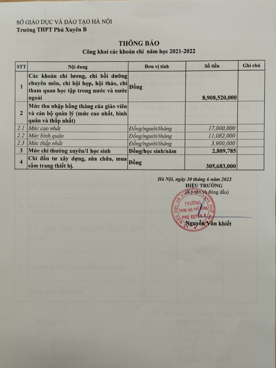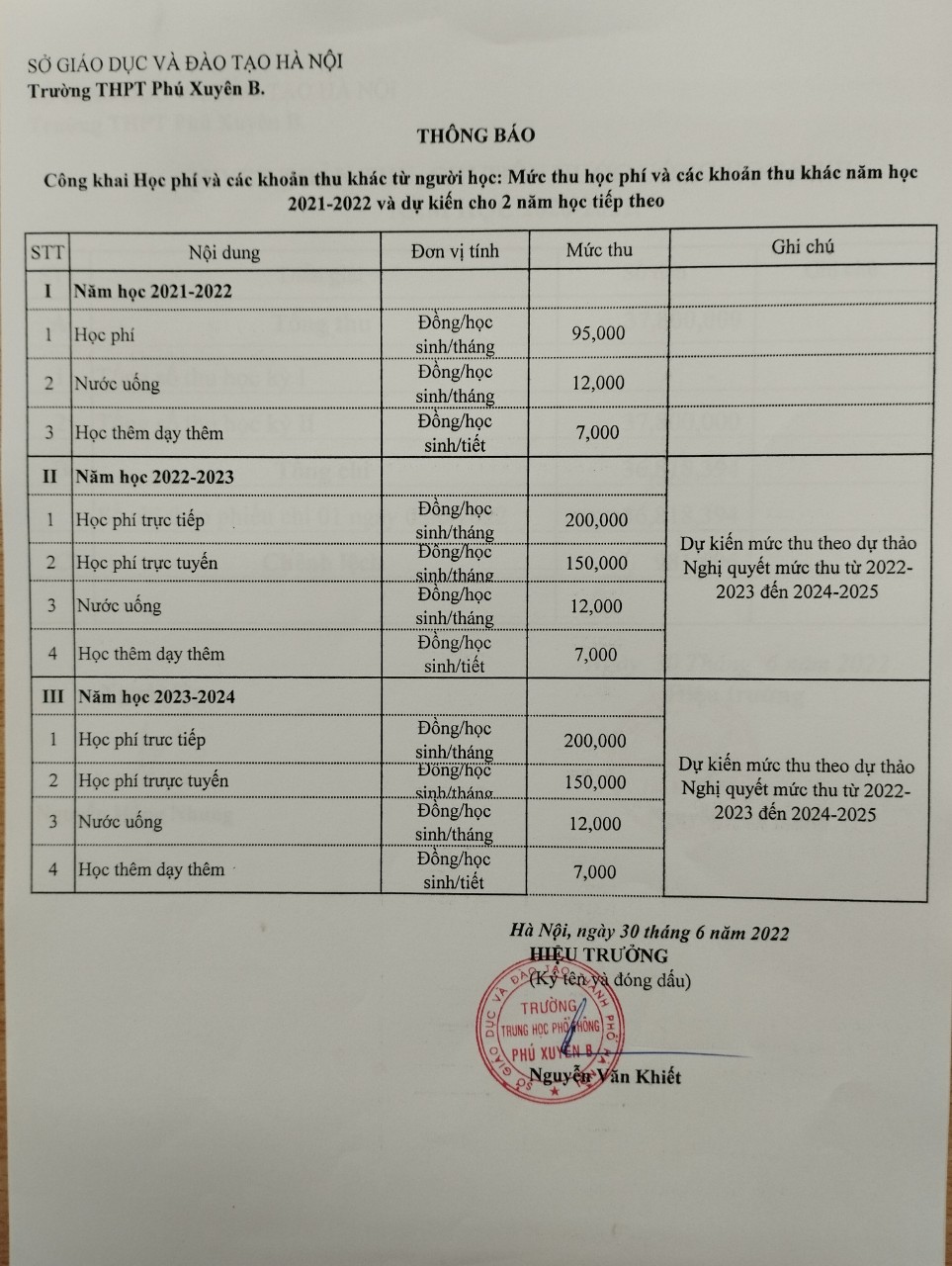 - Công khai học phí và các khoản thu khác từ học sinh năm học 2021 - 2022