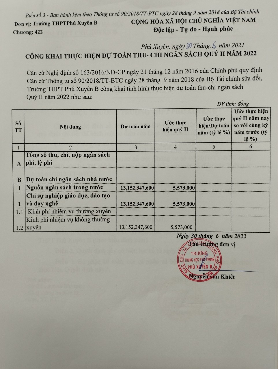 Công khai tình hình quyết toán sử dụng ngân sách quý 2- 2022