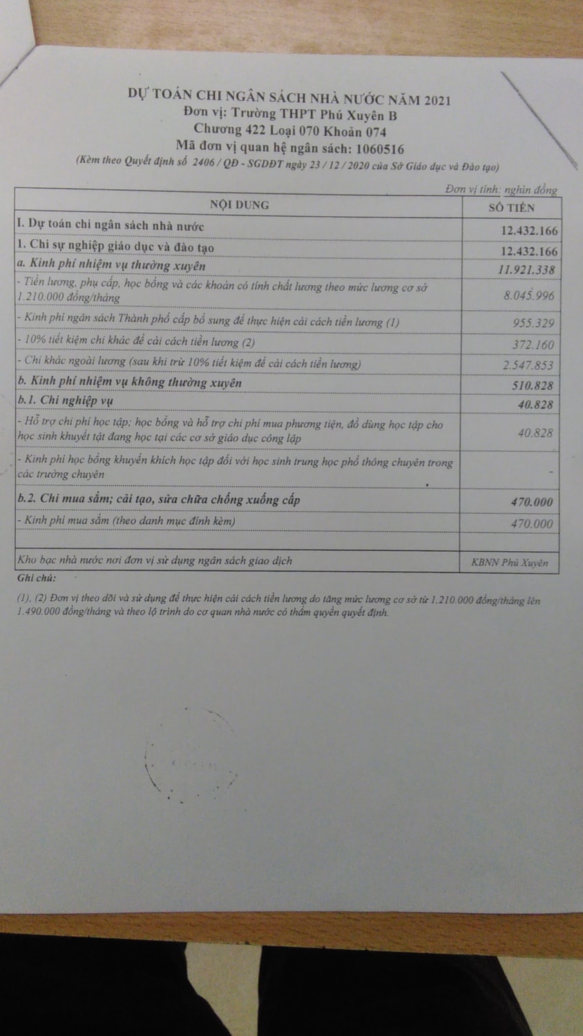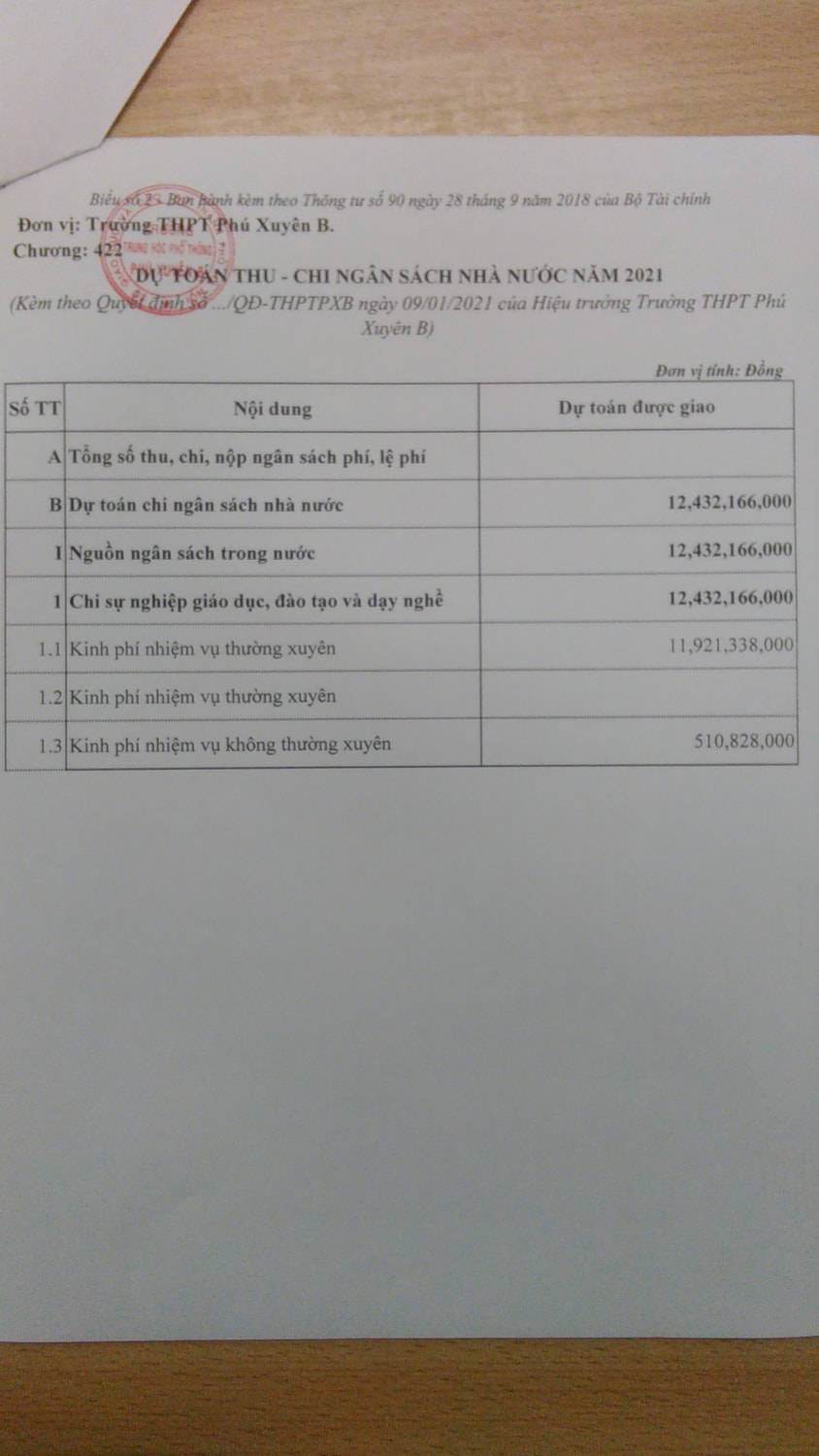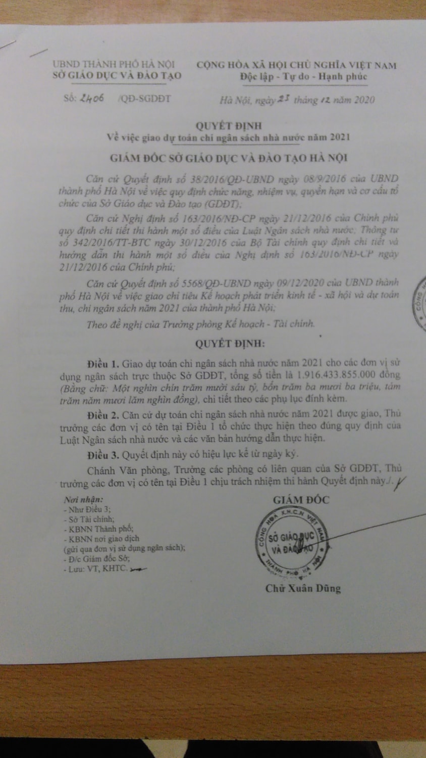 Công khai quyết định giao dự toán đầu năm 2021 và quyết định sử dung ngân sách quý 4 năm 2020