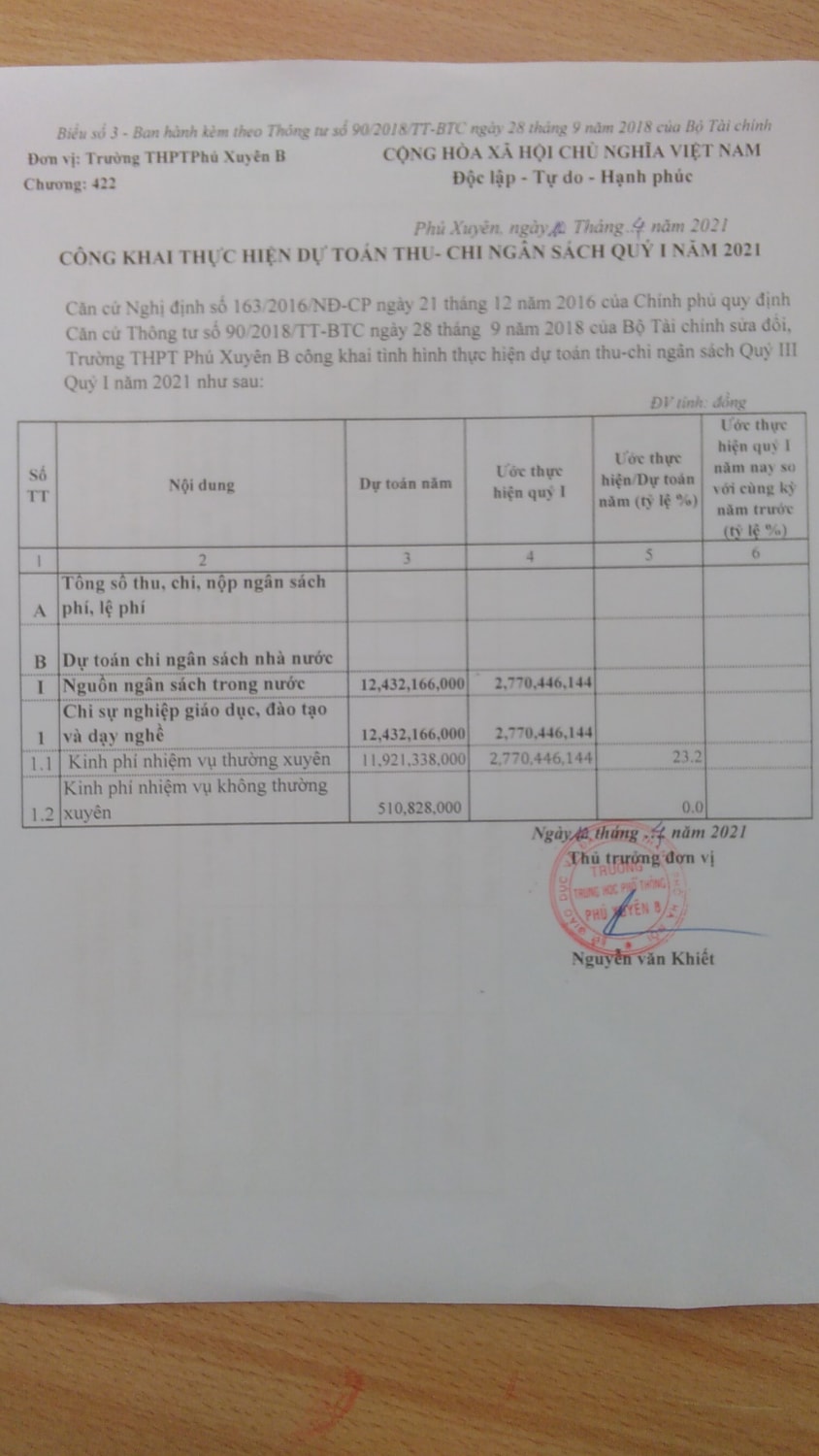 Công khai quyết định sử dụng ngân sách Quý 1/ năm 2021