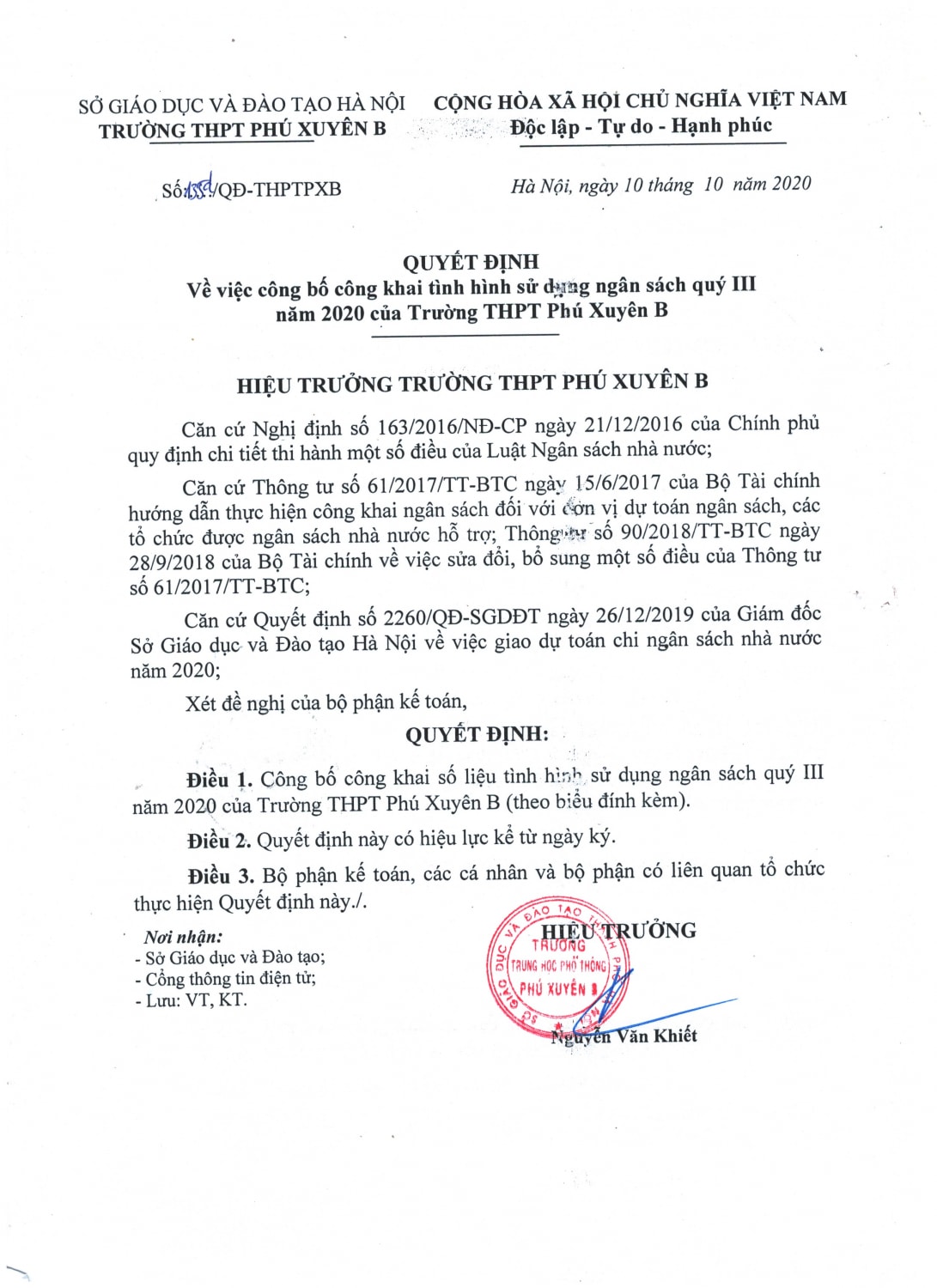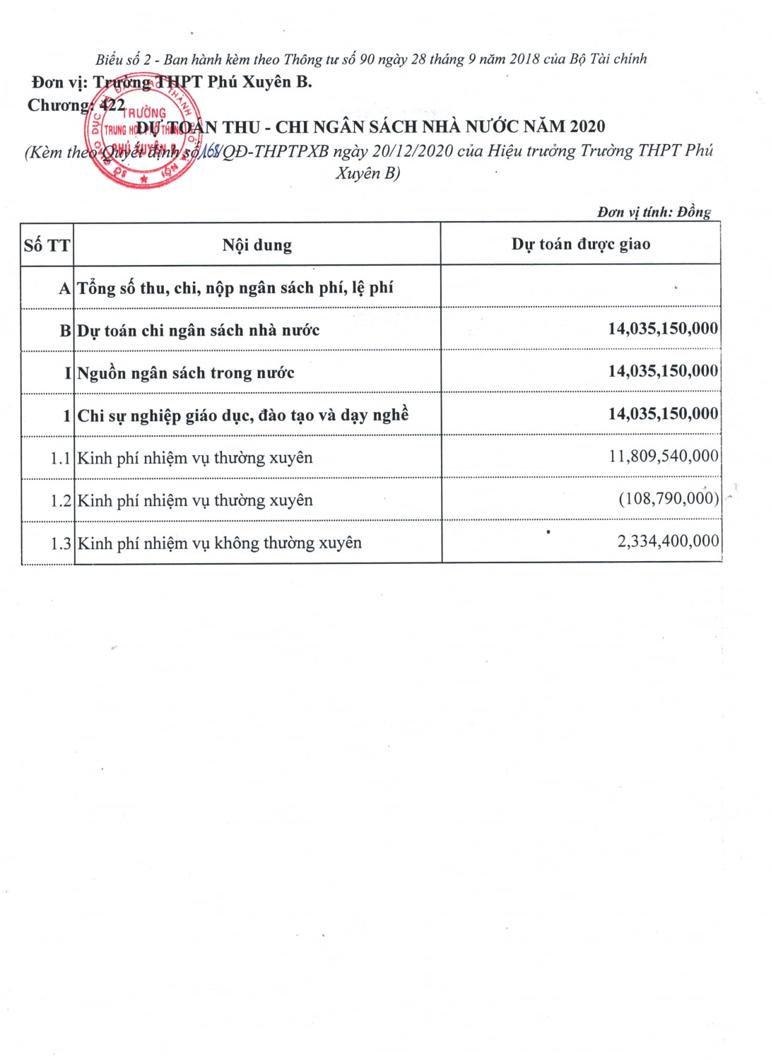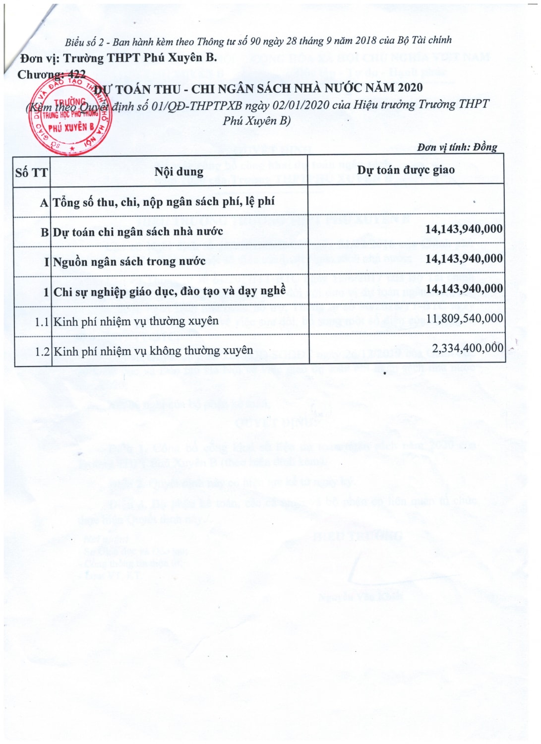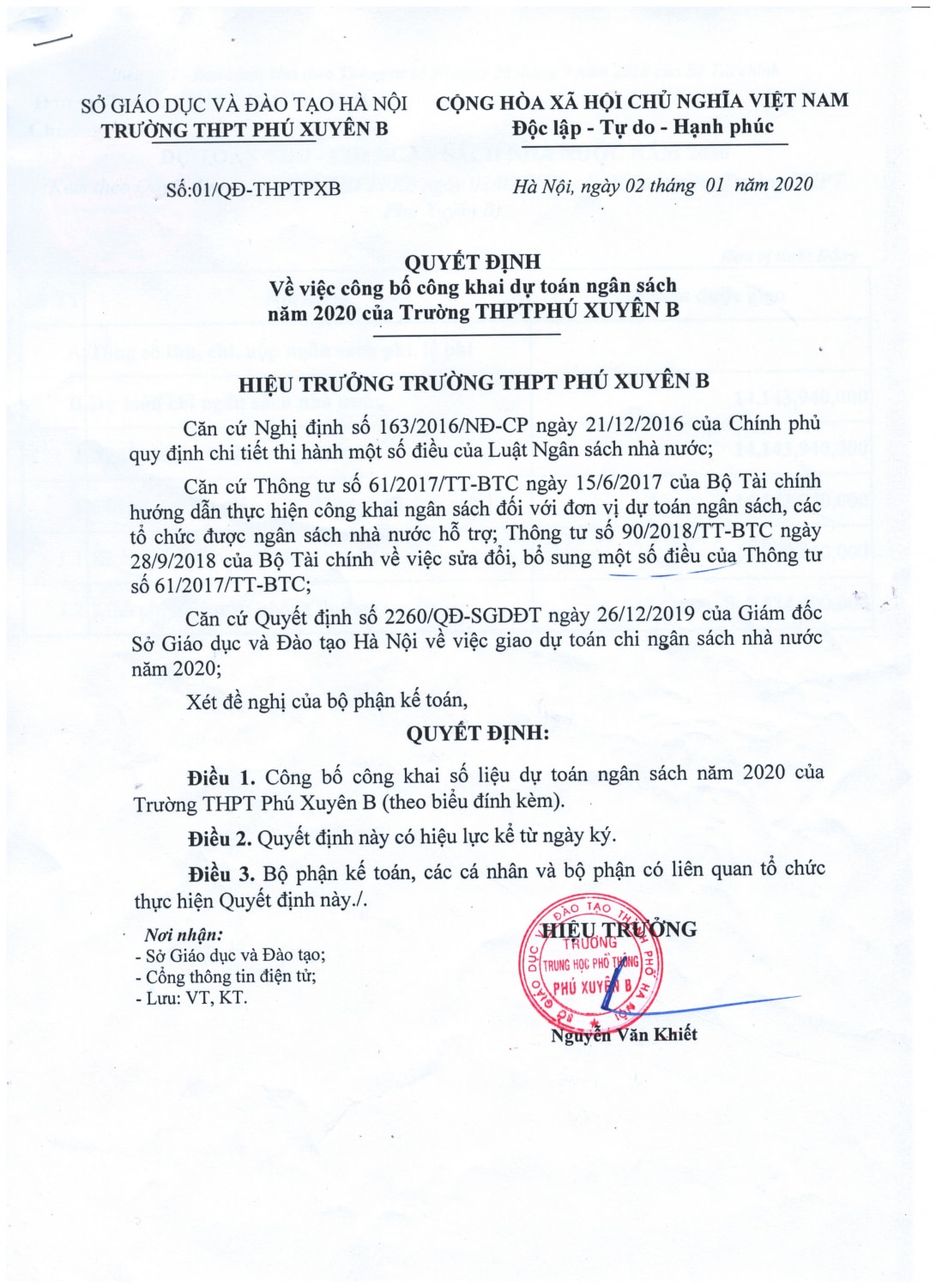 Thông báo công khai các quyết định dự toán ngân sách năm 2020.