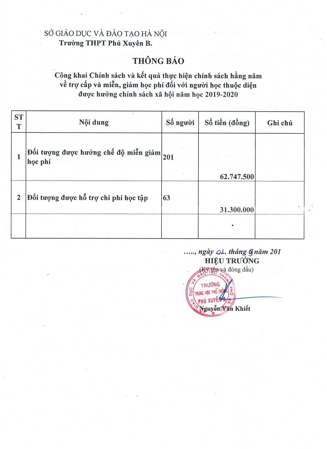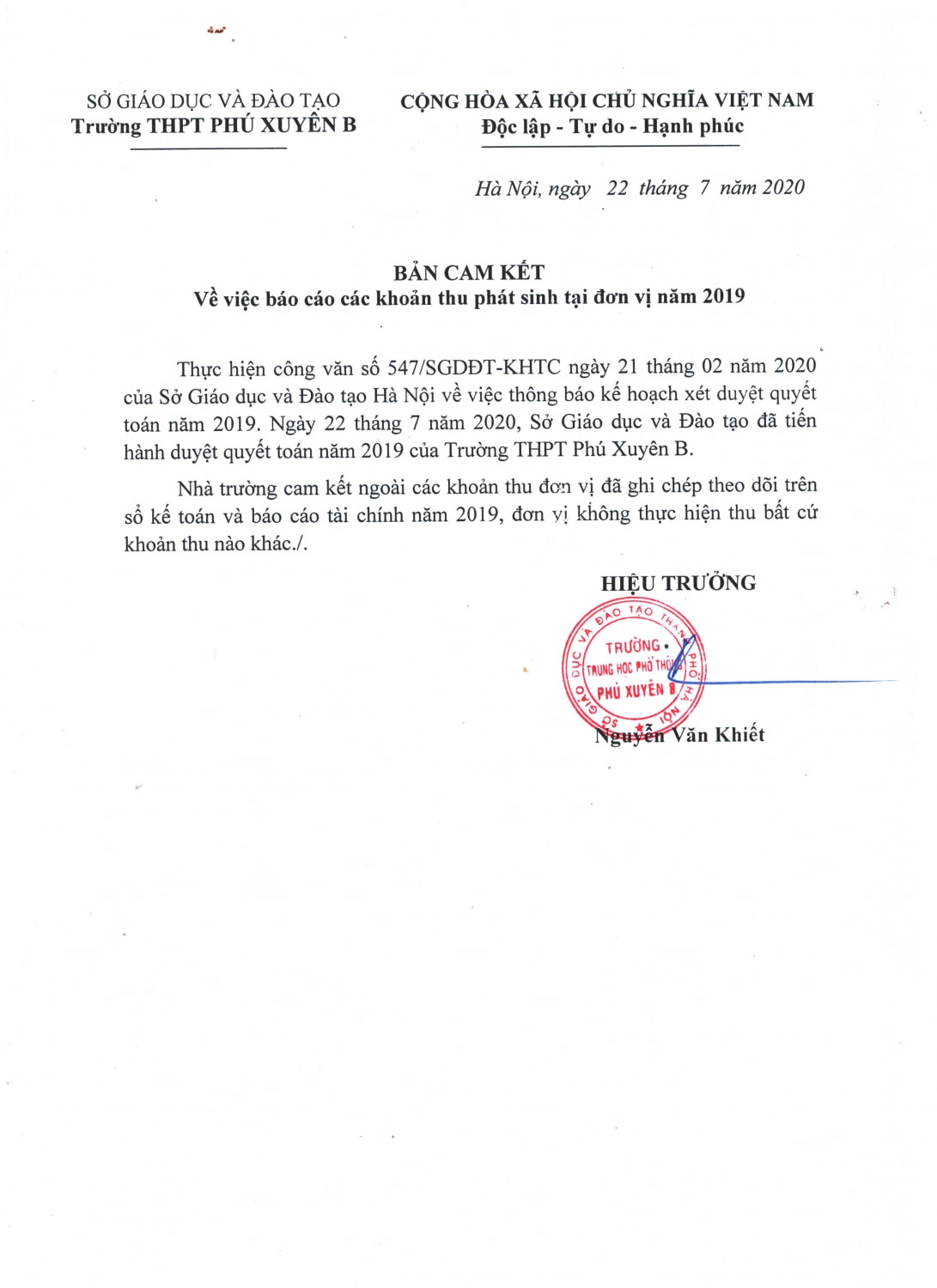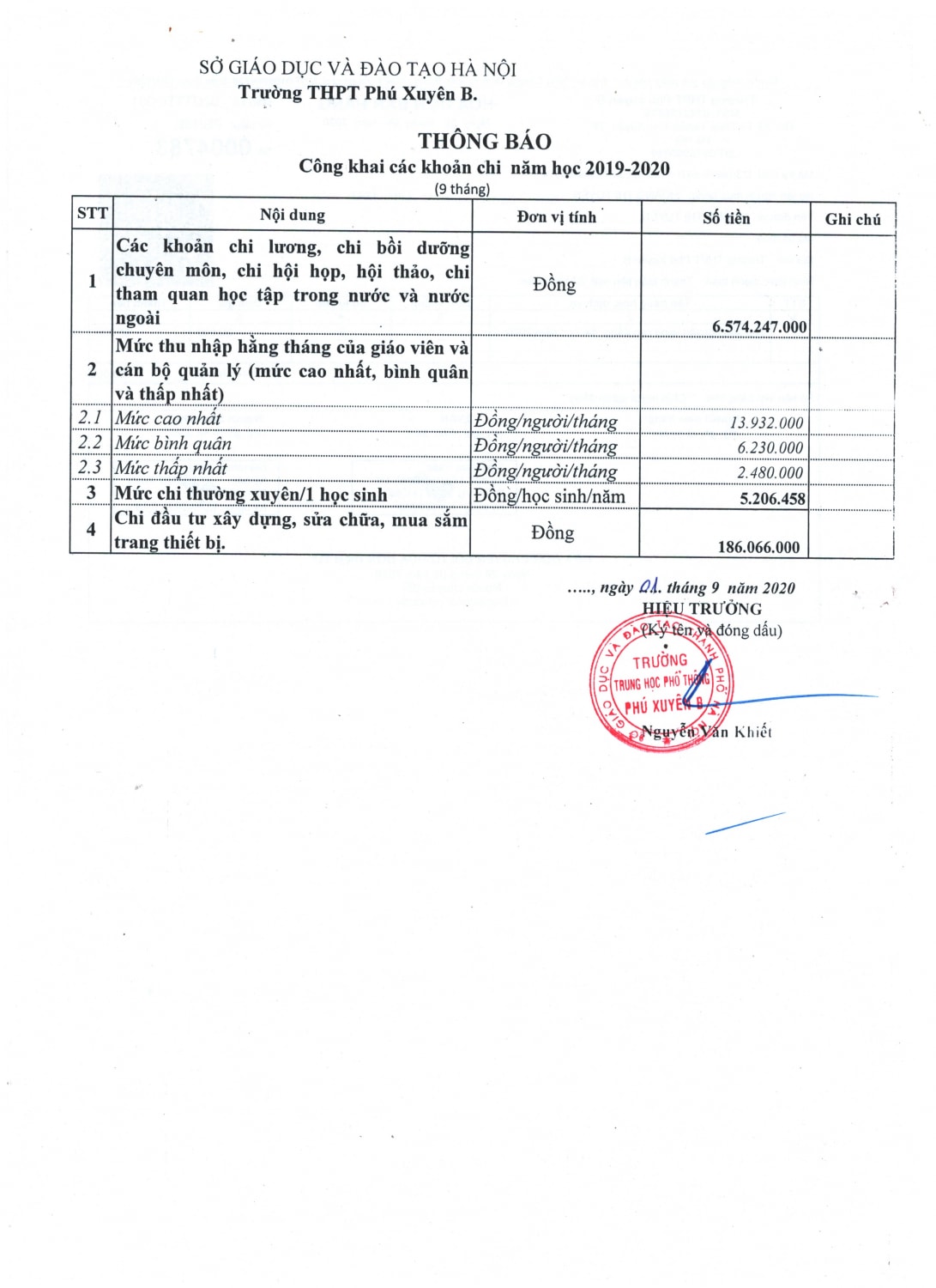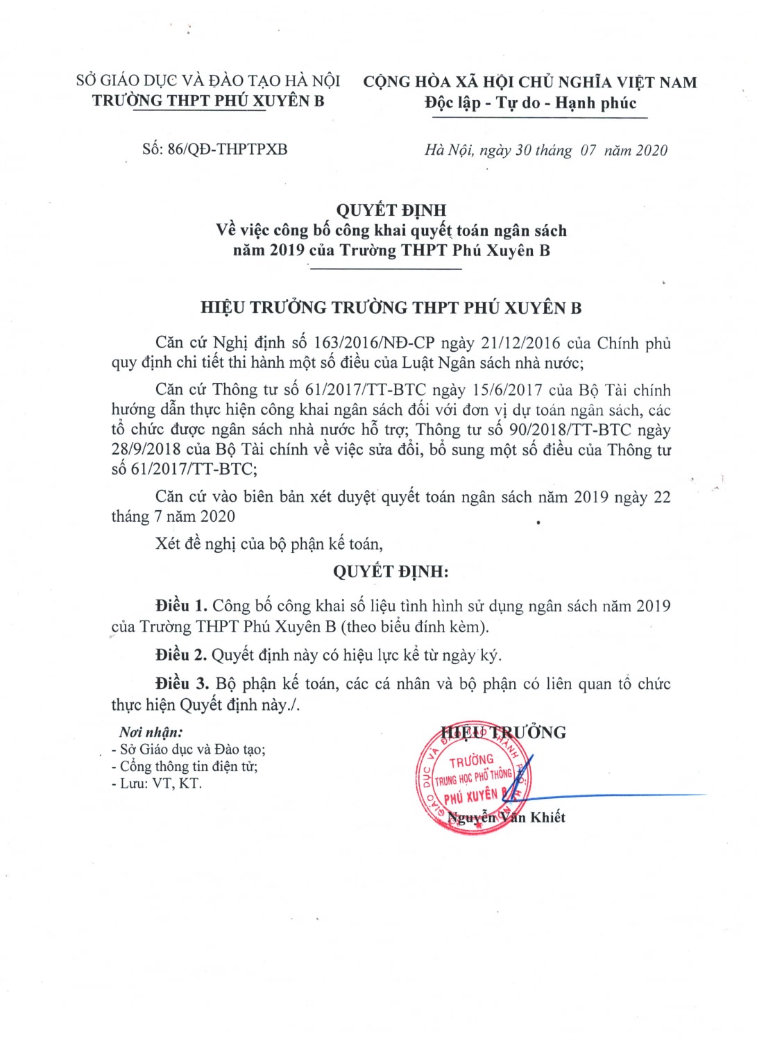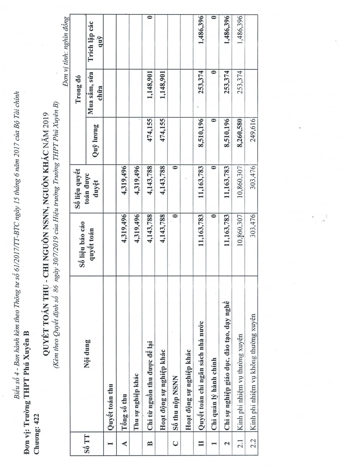 Thông báo công khai quyết toán kinh phí đã sử dụng trong năm 2019