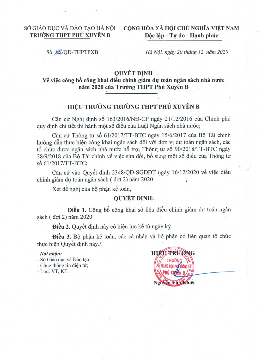Thông báo công khai giảm dự toán ngân sách nhà nước năm 2020