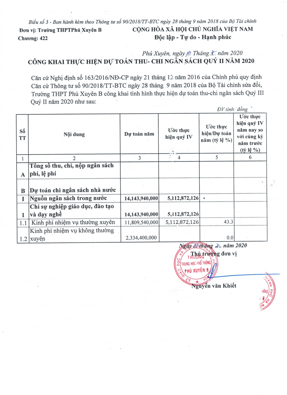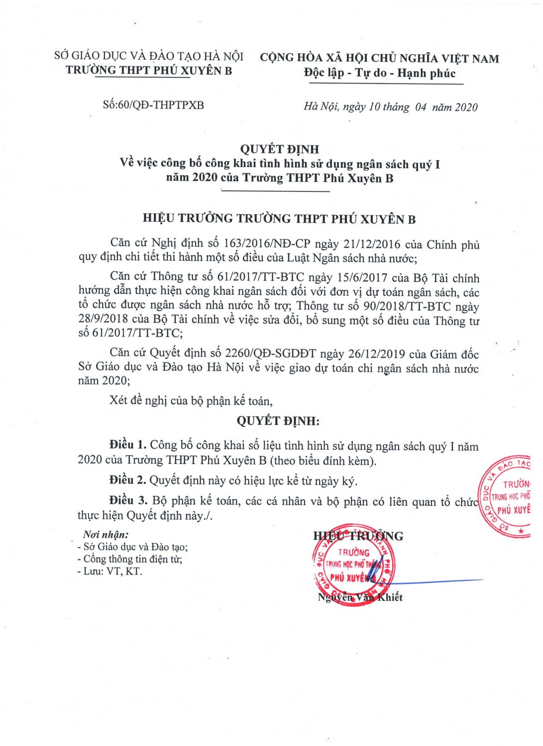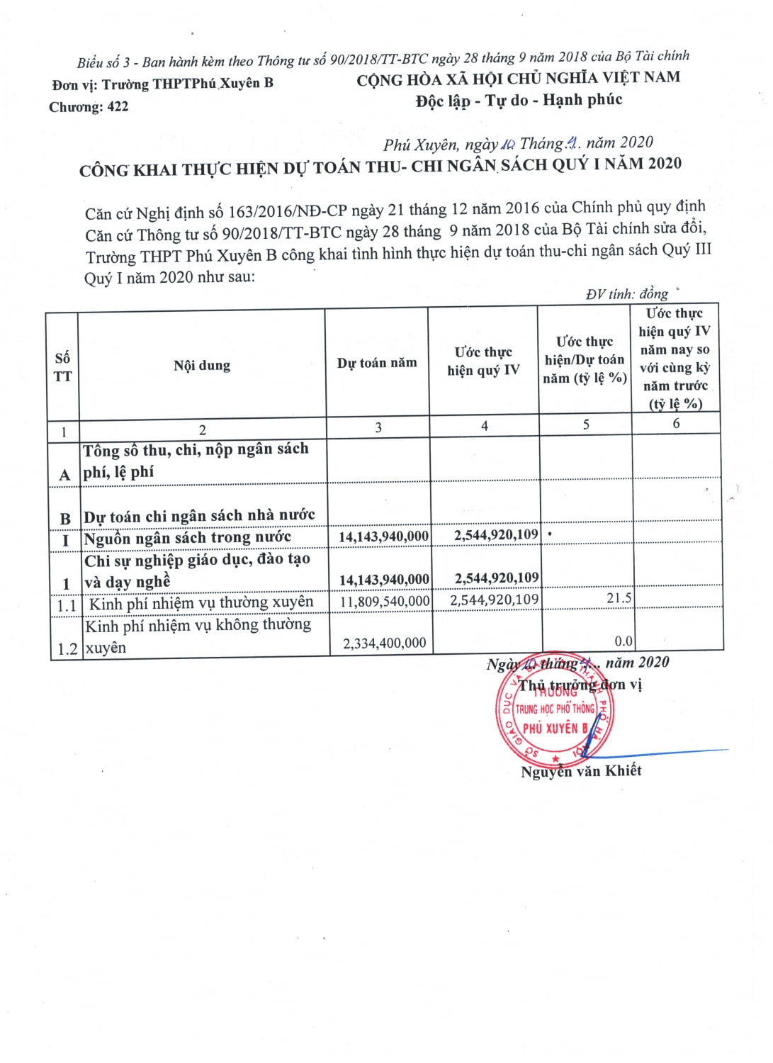 Thông báo công khai tình hình sử dụng ngân sách các quý trong năm 2020