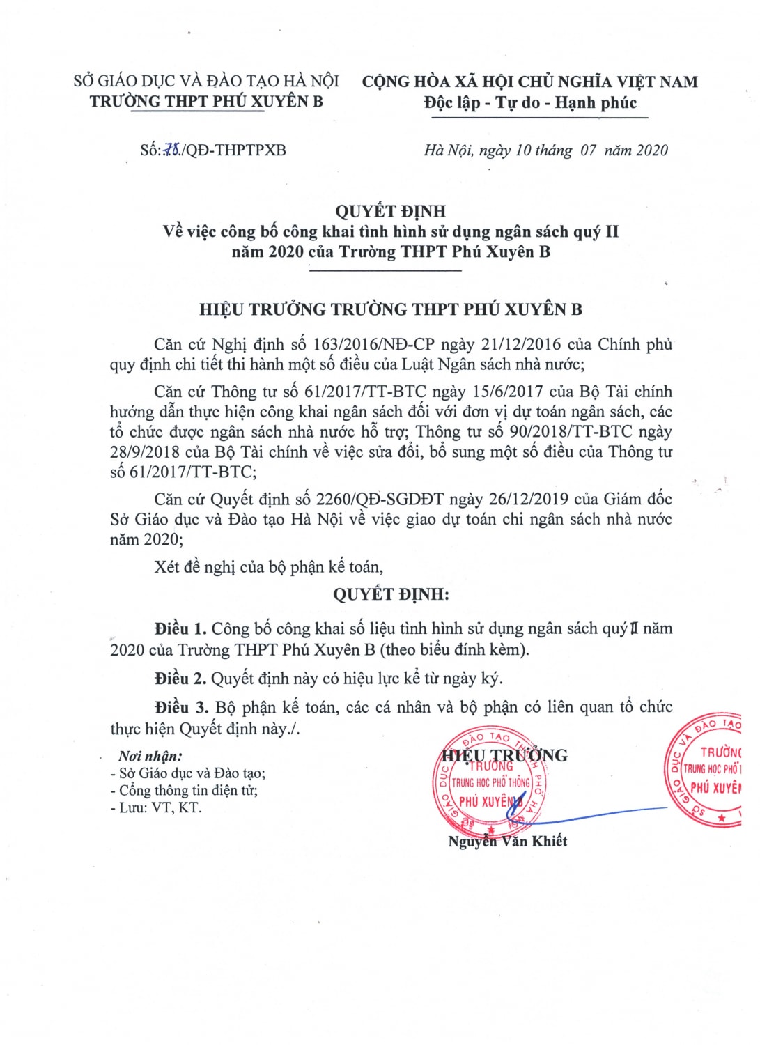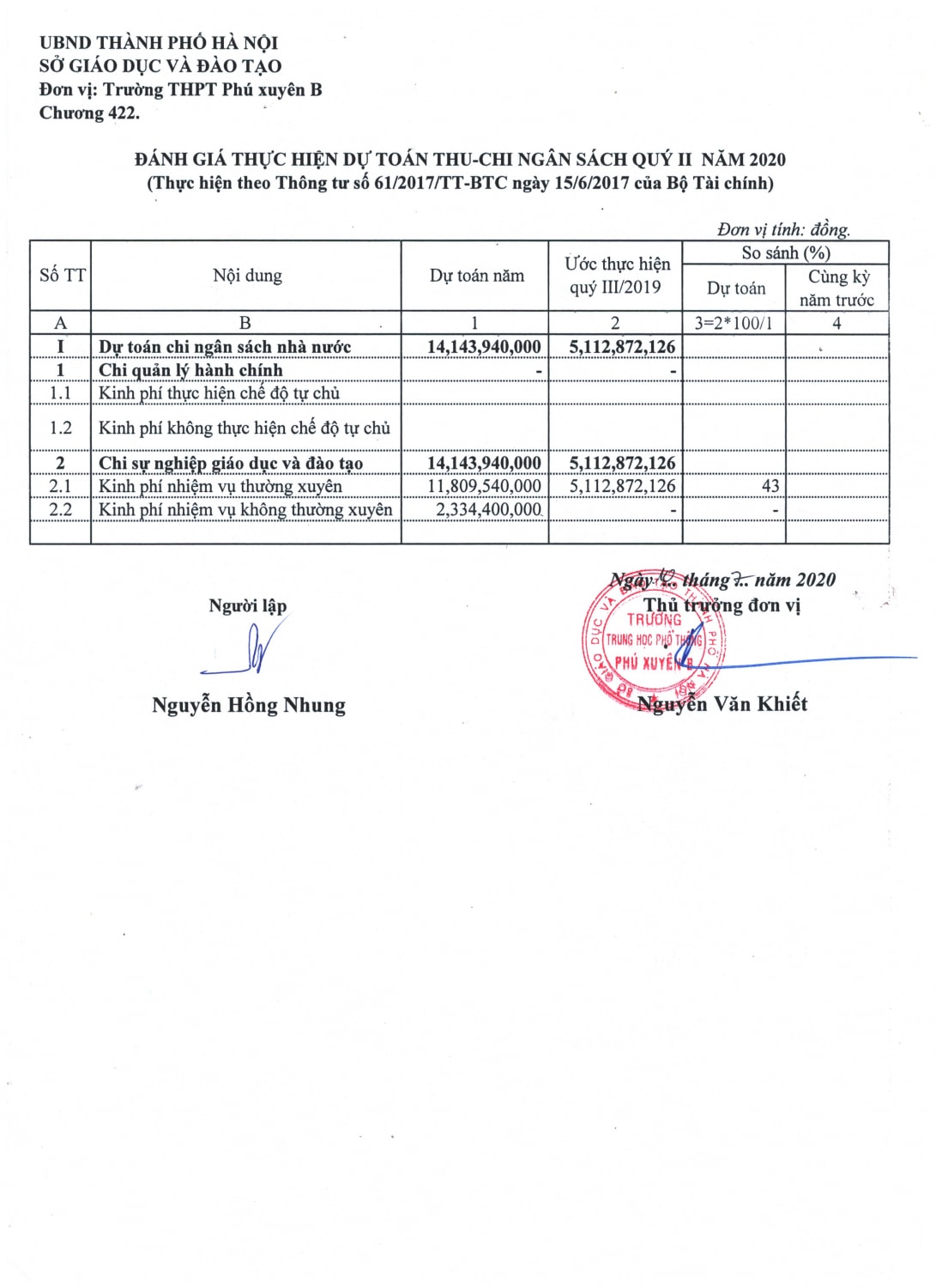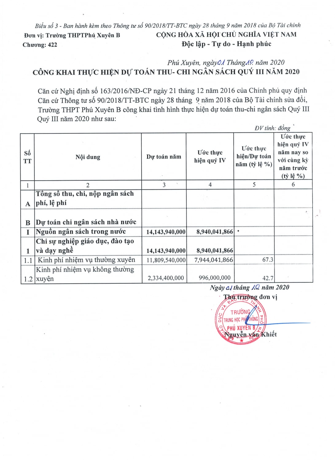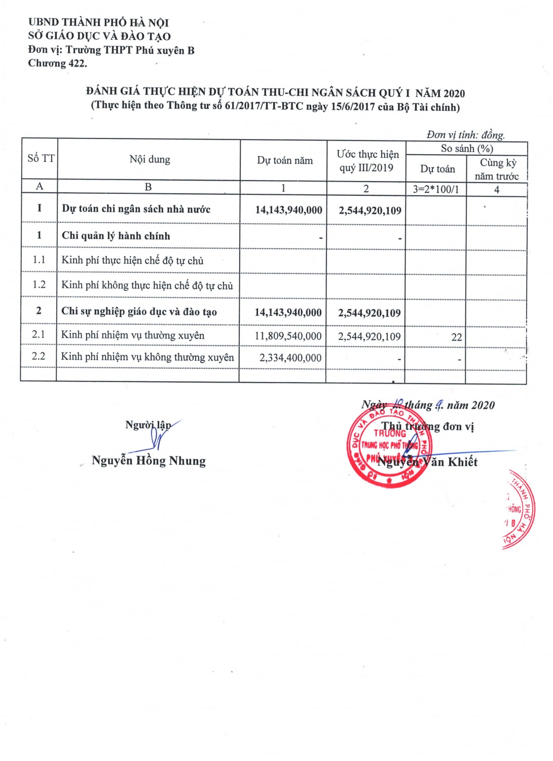 Thông báo công khai tình hình sử dụng ngân sách các quý trong năm 2020