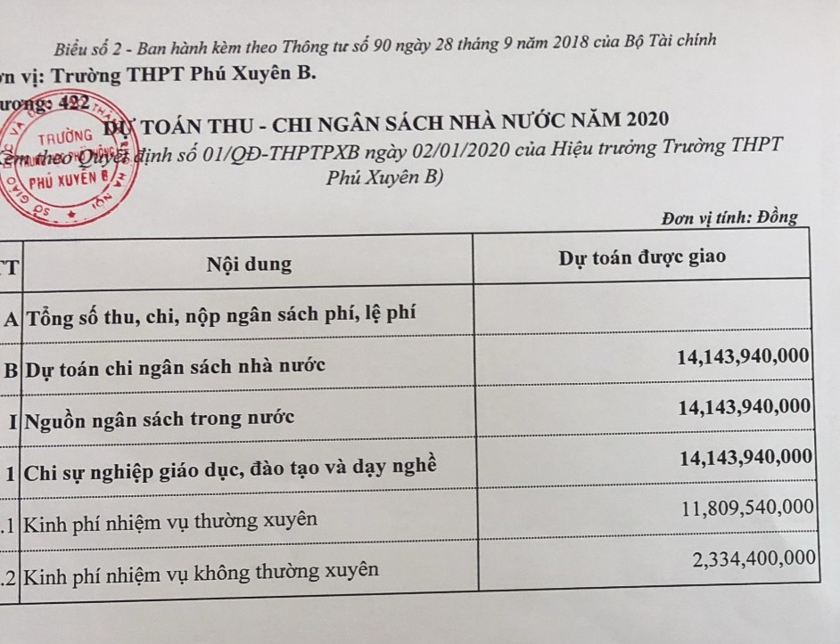 - Dự toán thu chi ngân sách nhà nước năm 2020
