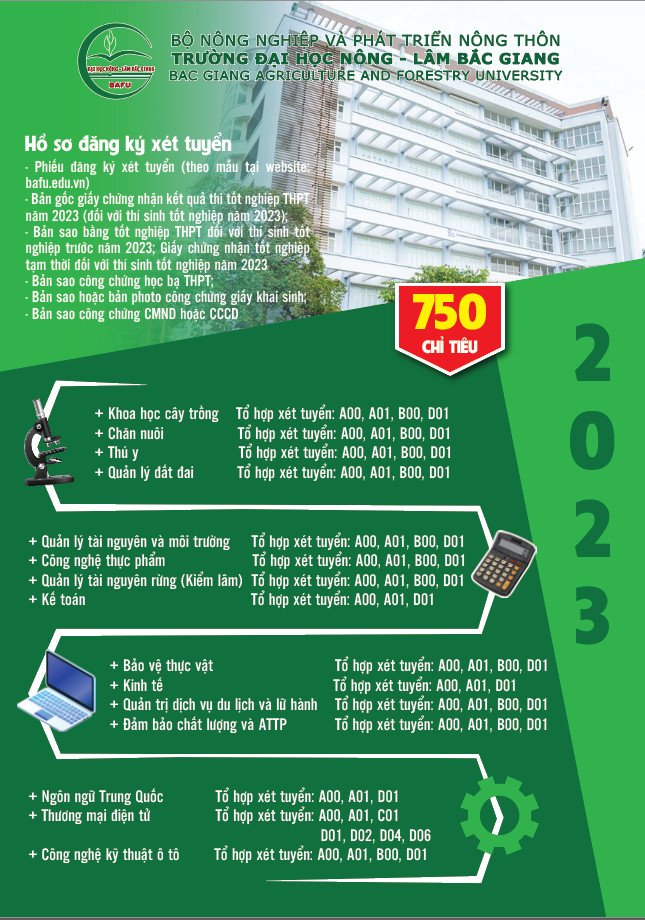 Góc tuyển sinh Đại học Nông Lâm Bắc Giang - và chỉ tiêu tuyển sinh