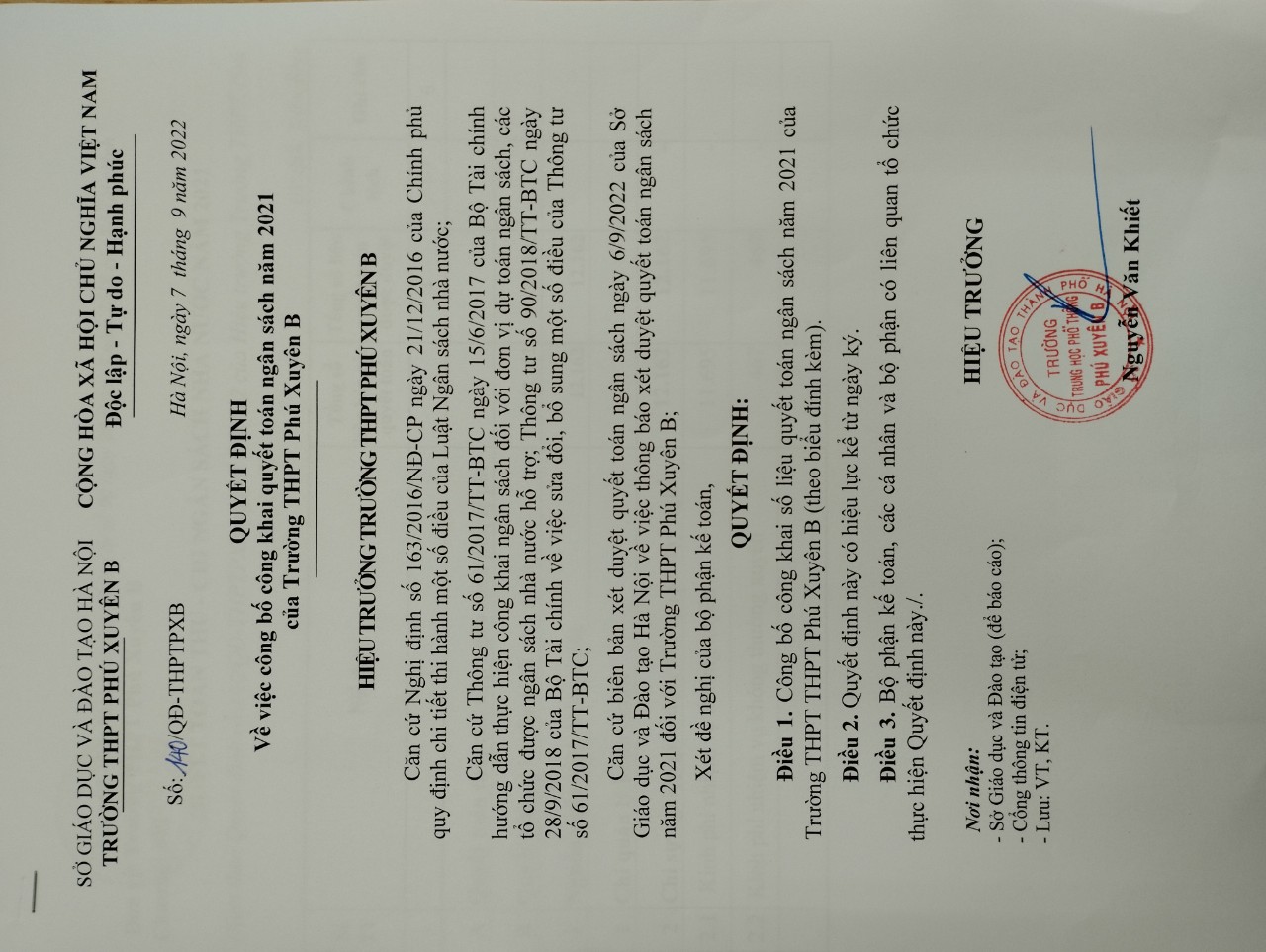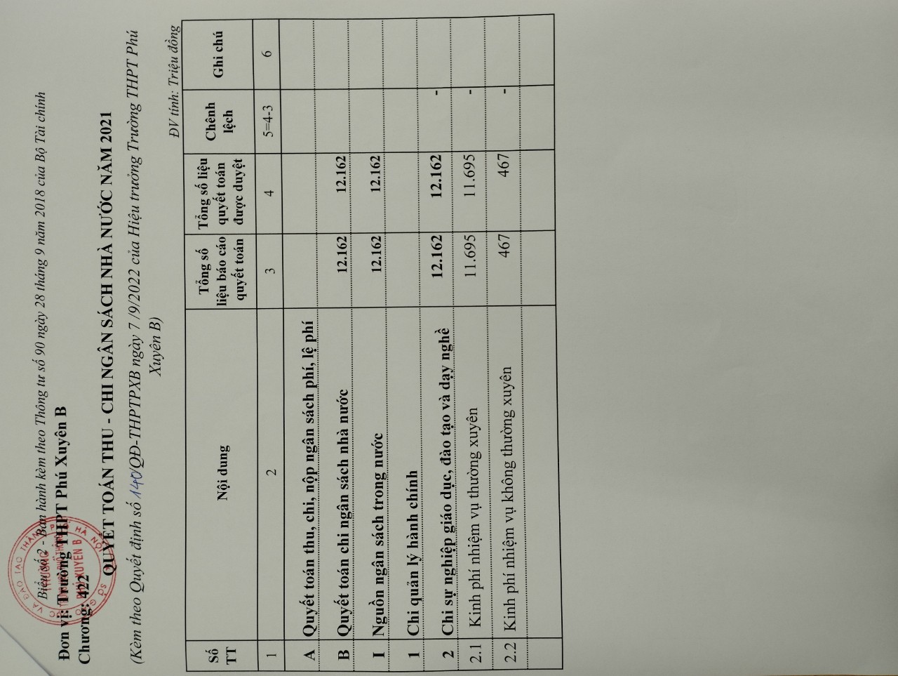 Quyết định 140 công khai quyết toán ngân sách năm 2021 và biểu quyết toán thu chi năm 2021