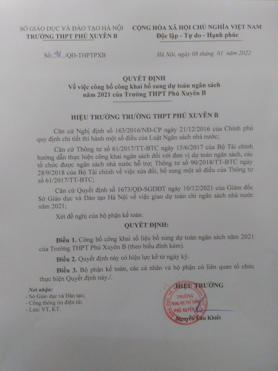 quyết định 41 công khai bổ sung dự toán ngân sách năm 2021