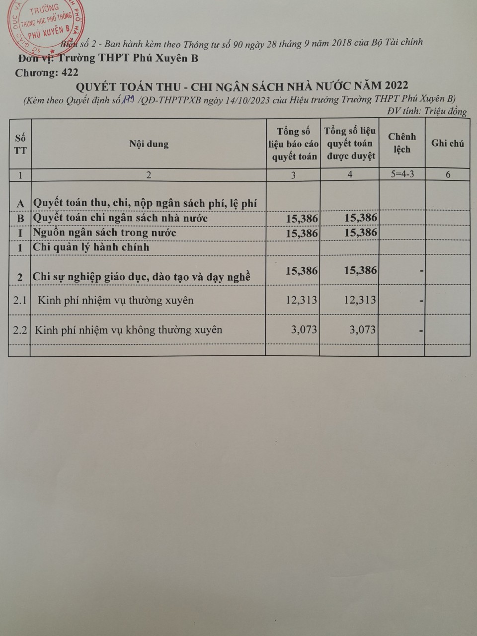 Quyết định công khai quyết toán thu - chi ngân sách nhà nước năm 2022 và biểu tổng hợp;