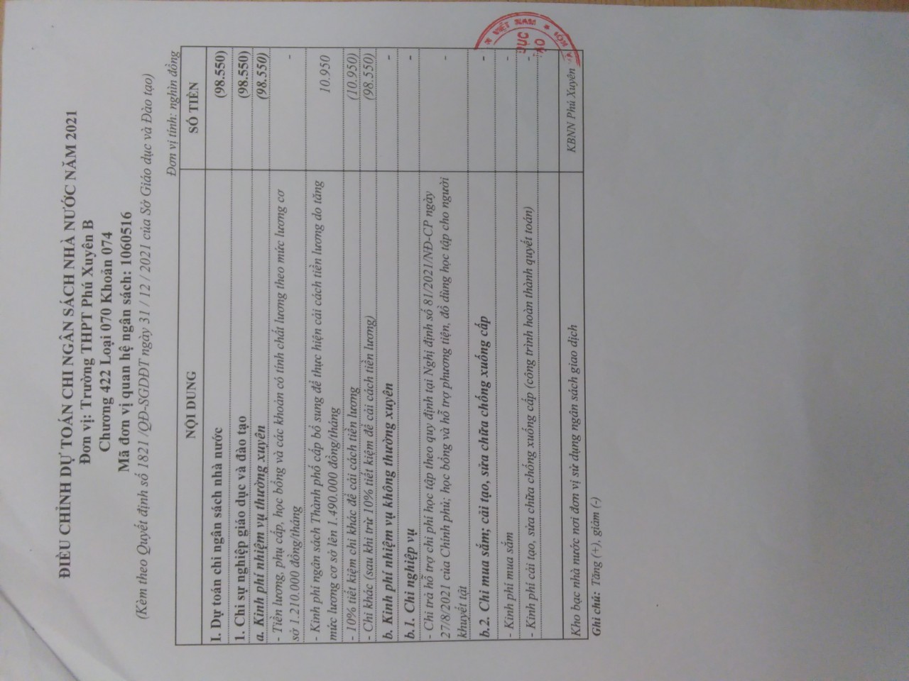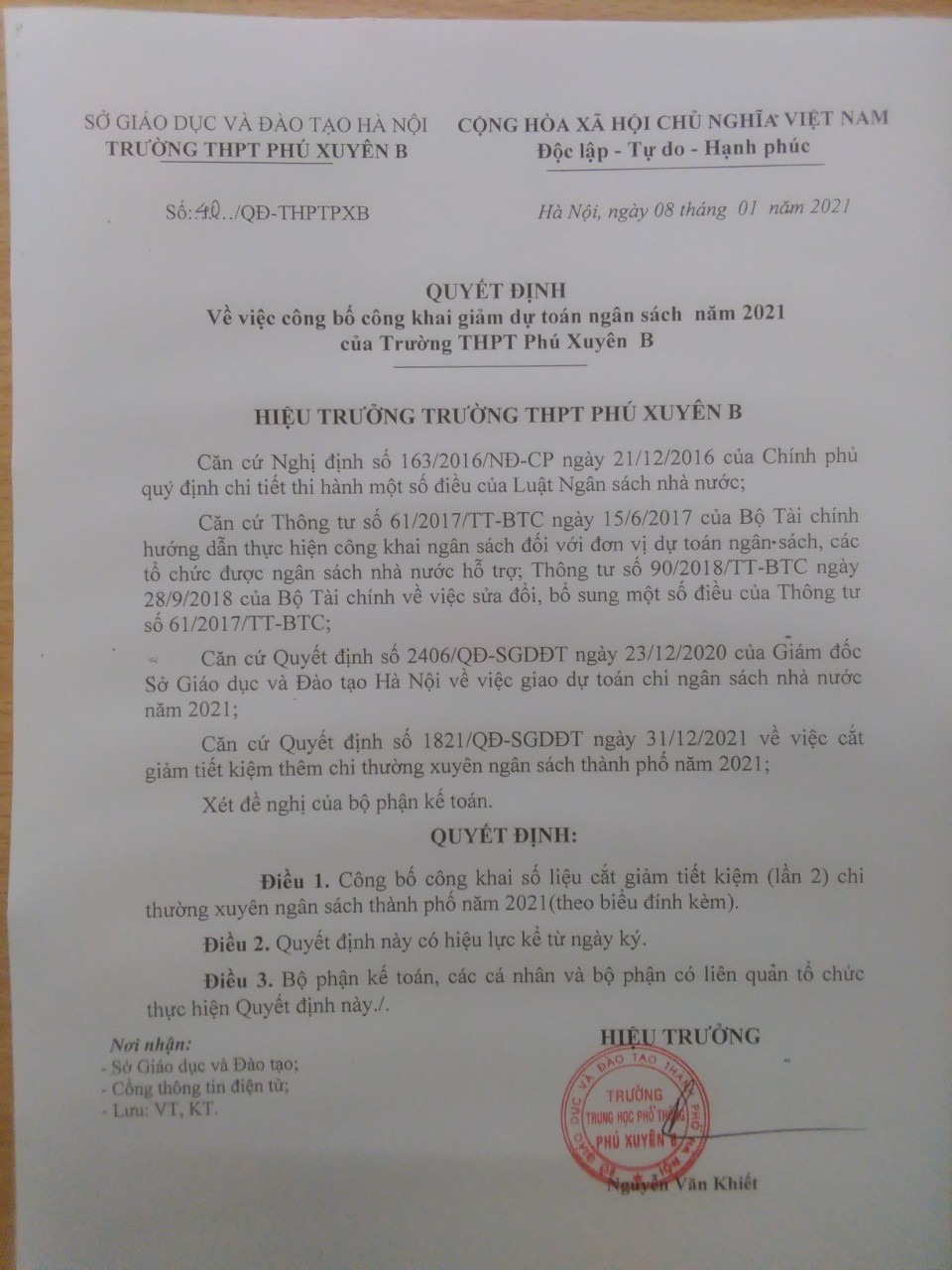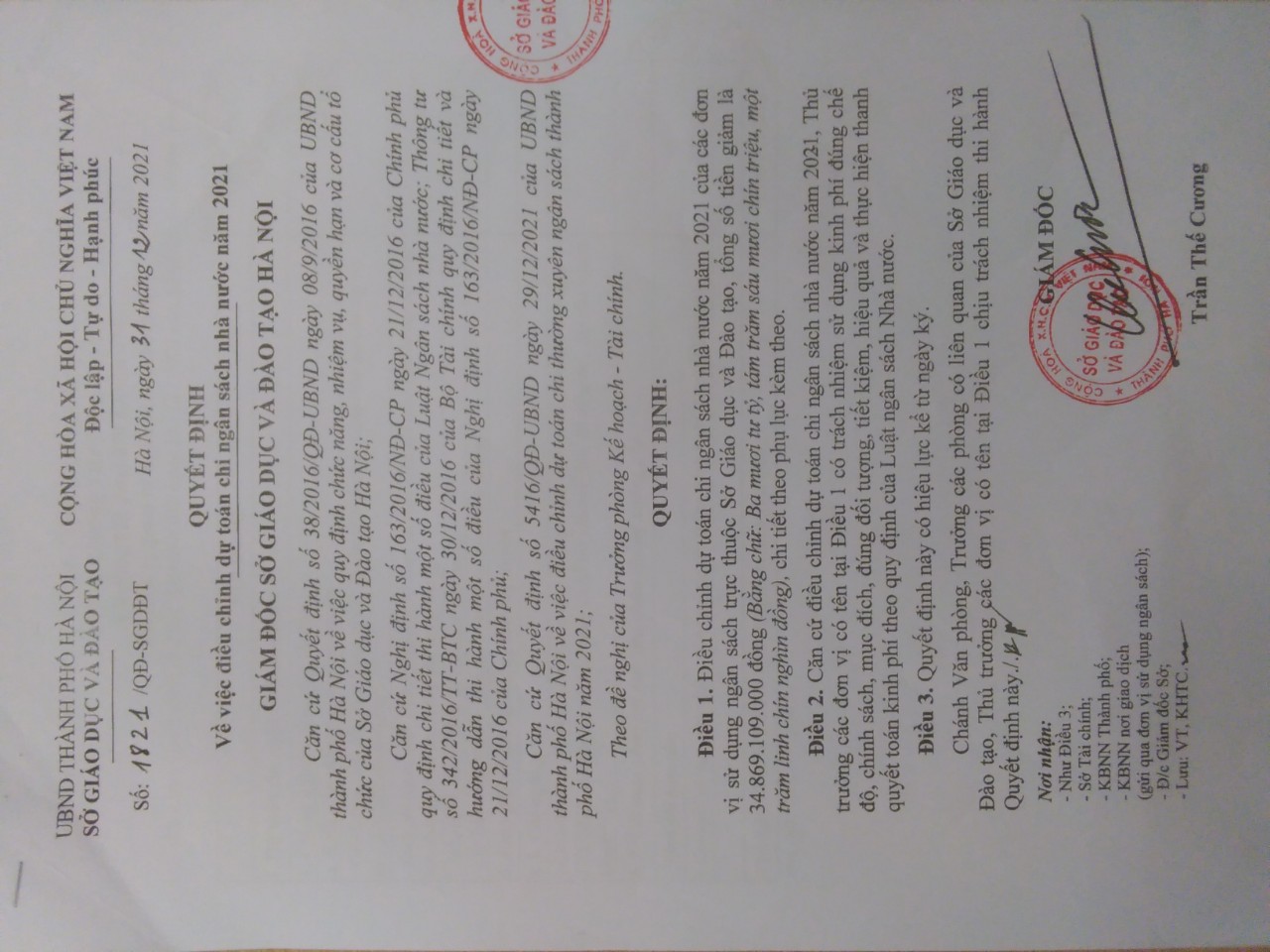 Quyết định 1821 của Sở Giáo dục và Đào tạo Hà Nội về giảm dự toán ngân sách năm 2021