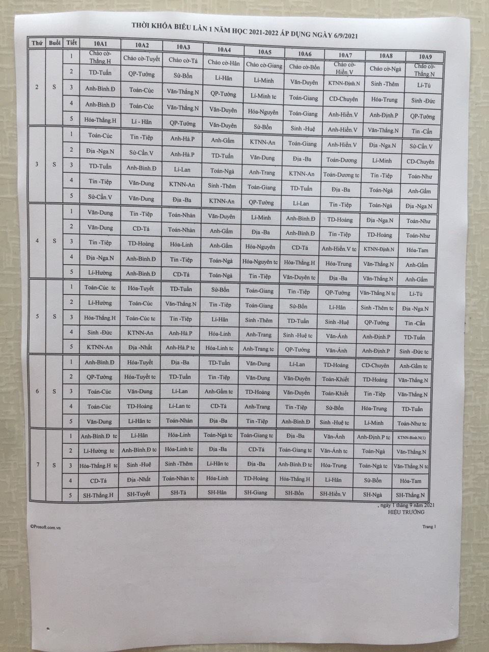 Thời khóa biểu Năm học 2021-2022 ( Bắt đầu từ ngày 06/9/2021)