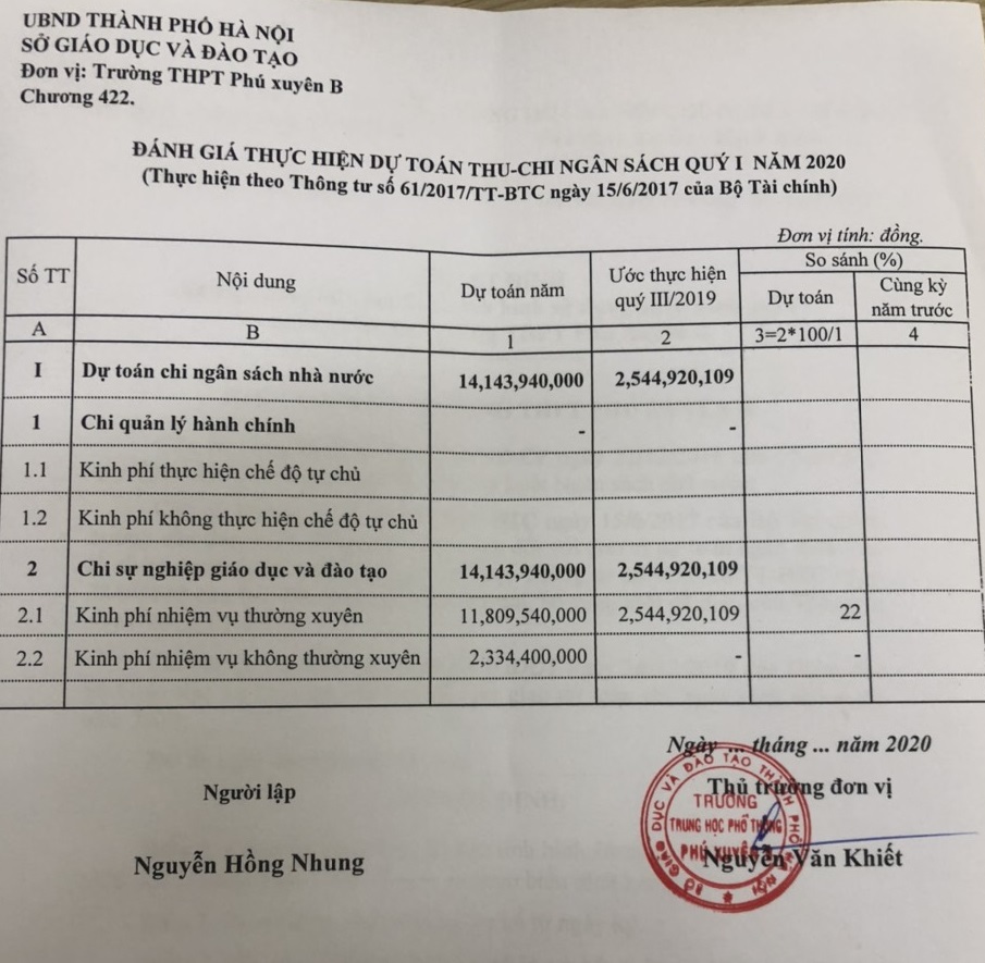 Quyết định về việc công bố công khai tình hình sử dụng ngân sách và đánh giá thực hiện dự toán chu chi ngân sách quý một năm 2020.