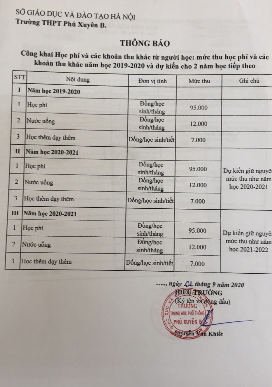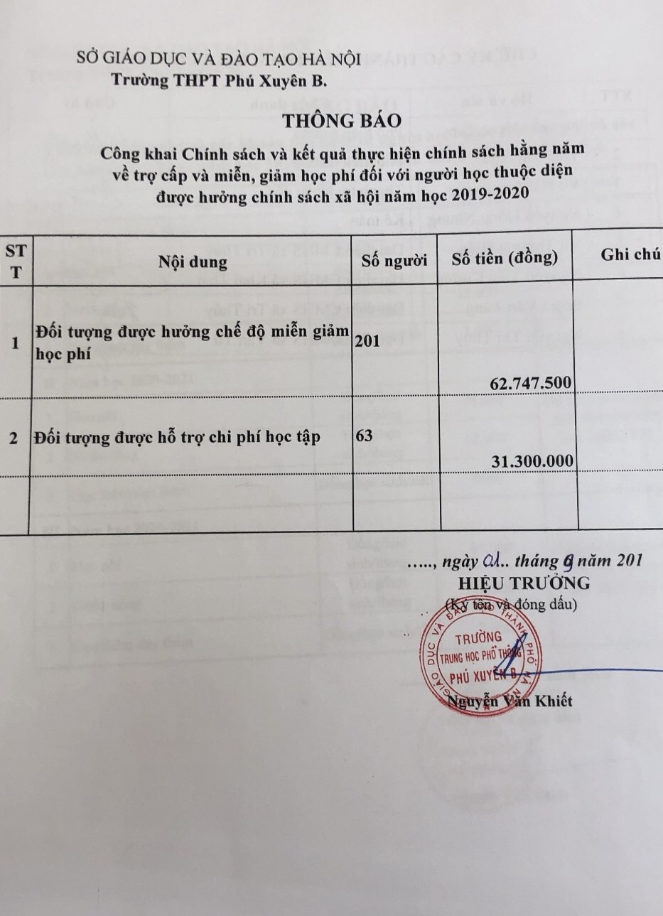 Công khai các khoản Thu - Chi năm học 2019 - 2020 và dự kiến 2 năm tiếp theo