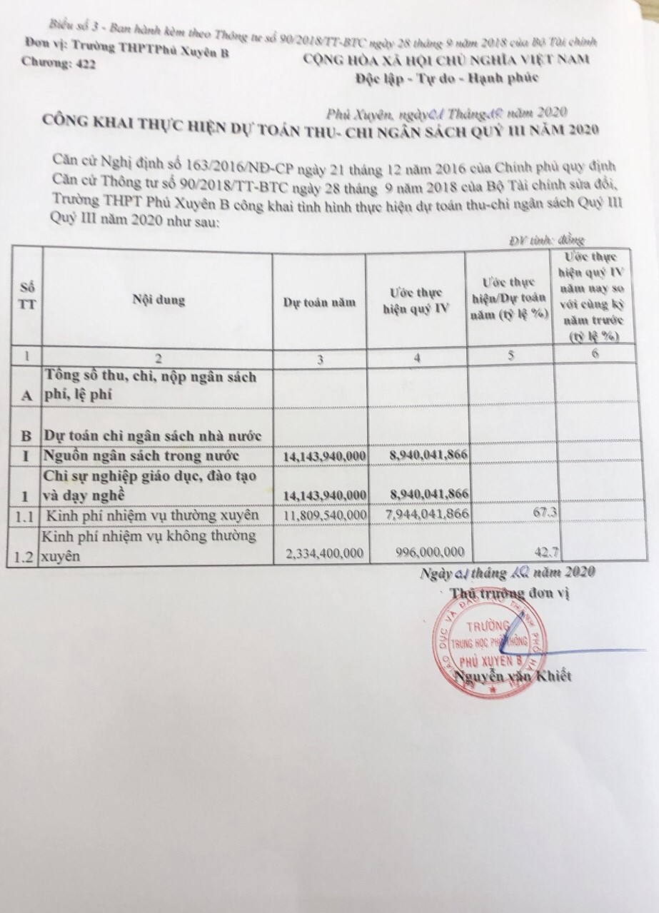 4. Công khai thực hiện dự toán Thu - Chi ngân sách quý III năm 2020