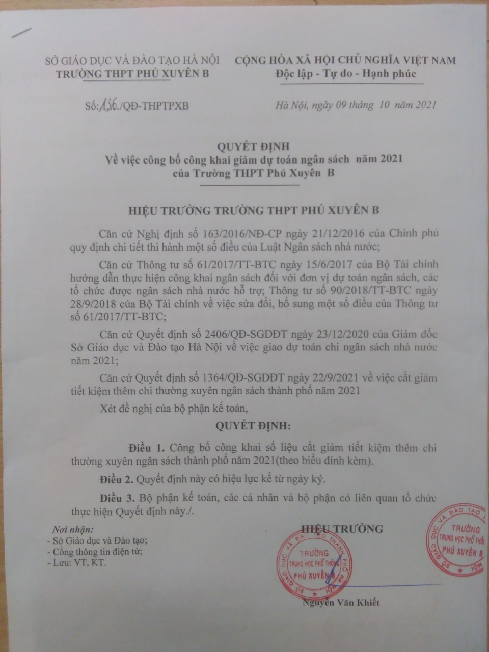 Quyết định giảm dự toán ngân sách nhà nước năm 2021
