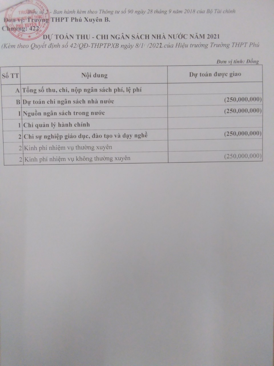 Quyết định số 42 về việc giảm dự toán ngân sách năm 2021 lần 2