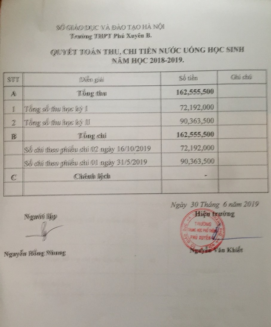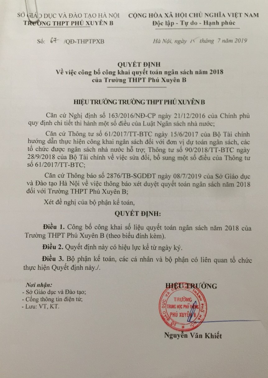 Các quyết định - Văn bản - Biểu mẫu tài chính của năm học